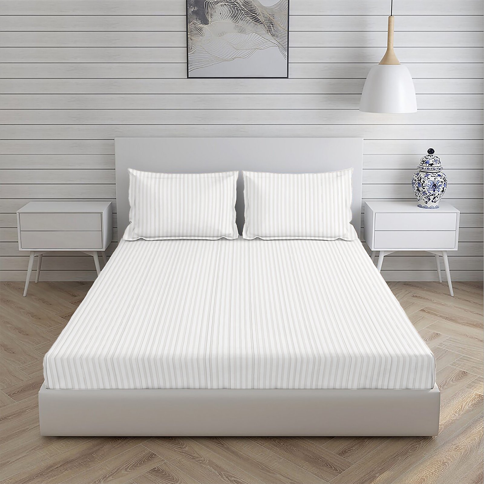 Home Stuff Since 1994 | 100% Solid Strip Cotton | 300 TC Hotel Strip Queen Size Bedsheet for Double Bed with 2 Pillow Cover (Bed Sheet – 108 x 108 Inch) (Pillow Cover – 18 X 28 Inch) (Color – WHITE)