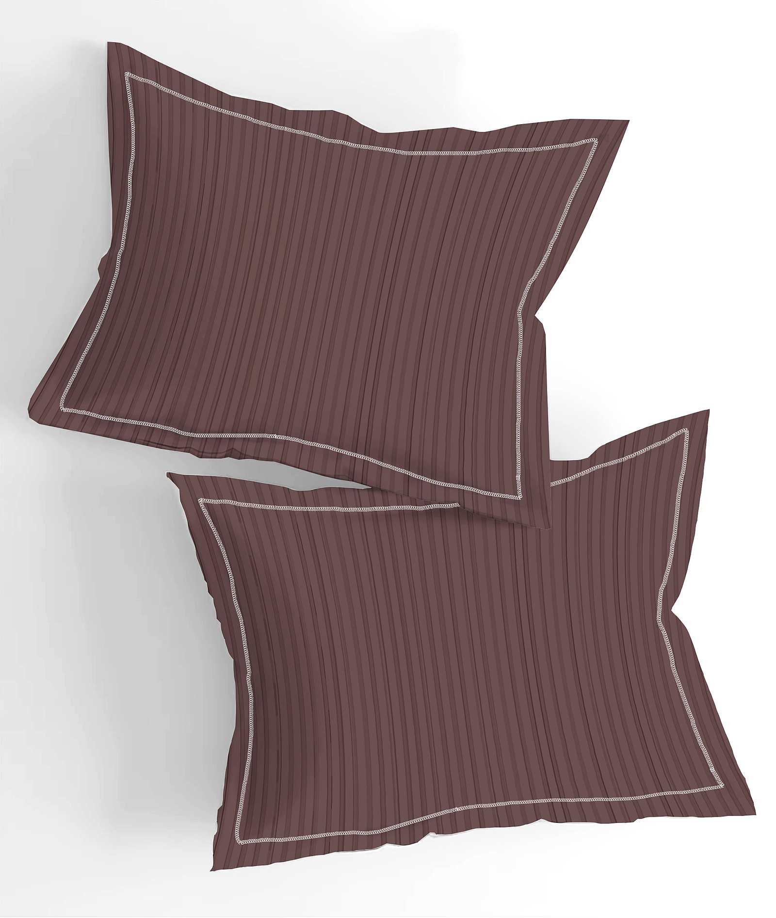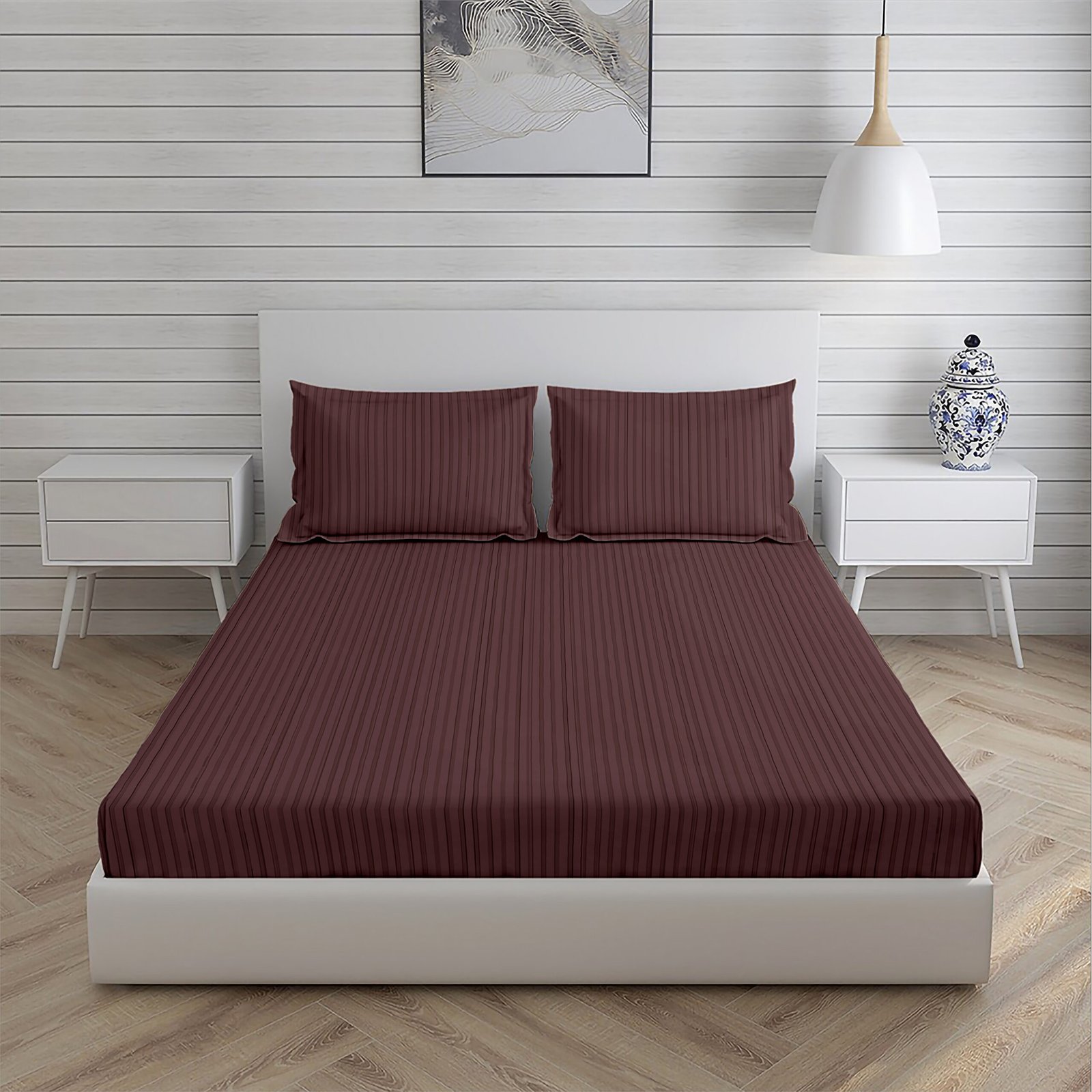 Home Stuff Since 1994 | 100% Solid Strip Cotton | 300 TC Hotel Strip Queen Size Bedsheet for Double Bed with 2 Pillow Cover (Bed Sheet – 90 x 100 Inch) (Pillow Cover – 17 X 27 Inch) (Color – Coffee)